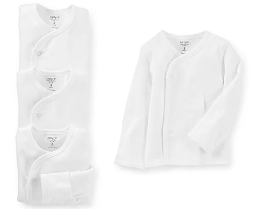 When you are waiting for the umbilical cord to fall off (takes about 2 weeks), they wear little side snap t-shirts so the tummy area is open to the air. I don't recommend Luvable Friends -- I had those and the neck is really weird and loose. Carter's and Little Me are much better.